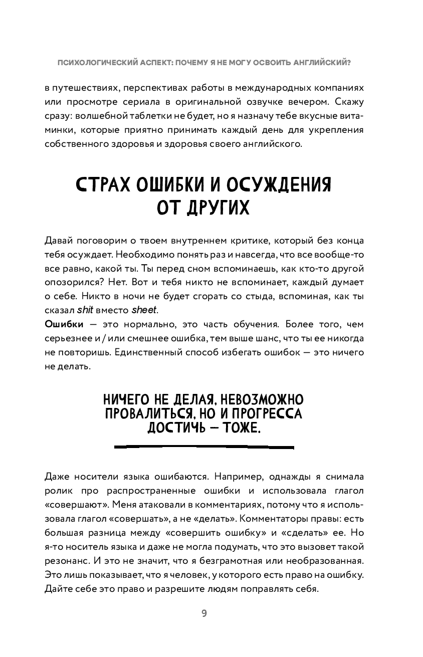 Научиться понимать живую английскую речь и начать уверенно говорить с помощью одной книги – реально. Это практический курс для тех, кто хочет без стресса вернуться к английскому или начать сначала. Вначале вы разбираетесь с психологическими барьерами и собираете своё "английское Я", а дальше – пошаговая работа над навыками: слушаем (подкасты, видео, песни) и тренируемся через shadowing; говорим (репетиции, свободные монологи, сценарии общения); читаем (комментарии, Reddit, статьи, книги по уровню); пишем (to-do списки, дневник, промпты).