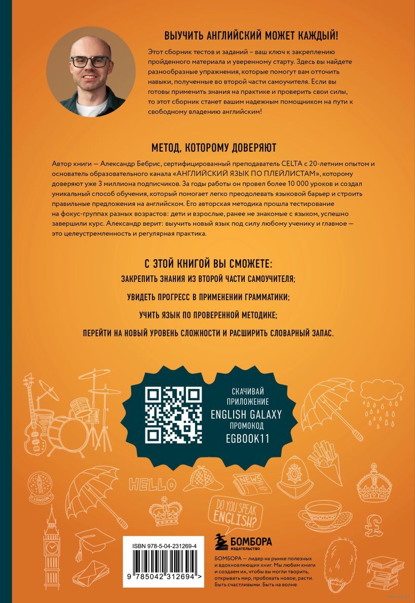 Перед вами рабочая тетрадь ко второму самоучителю Александра Бебриса "Английский для начинающих. Повышаем уровень A1-A2". Это практическое пособие, которое помогает уверенно продвинуться от A1 к A2: вы системно повторяете ключевую лексику и грамматику, развиваете навыки чтения и письма и закрепляете материал через разнообразные задания и тематические тесты. Четкая структура и постепенное усложнение делают занятия понятными и результативными, а итоговые проверки позволяют оценить уровень подготовки.