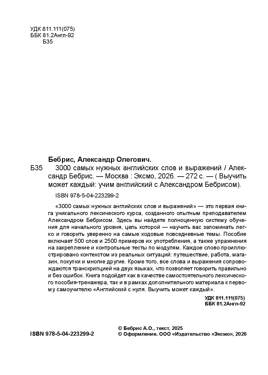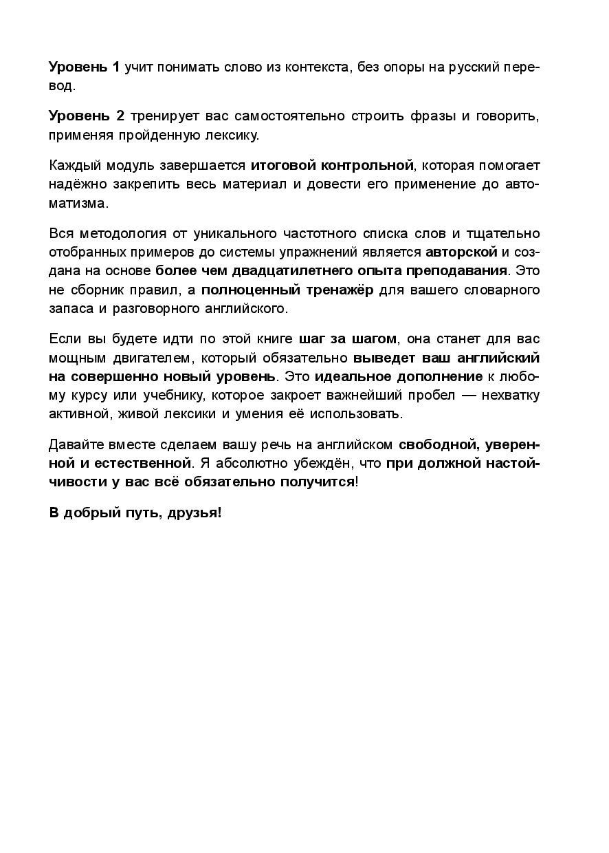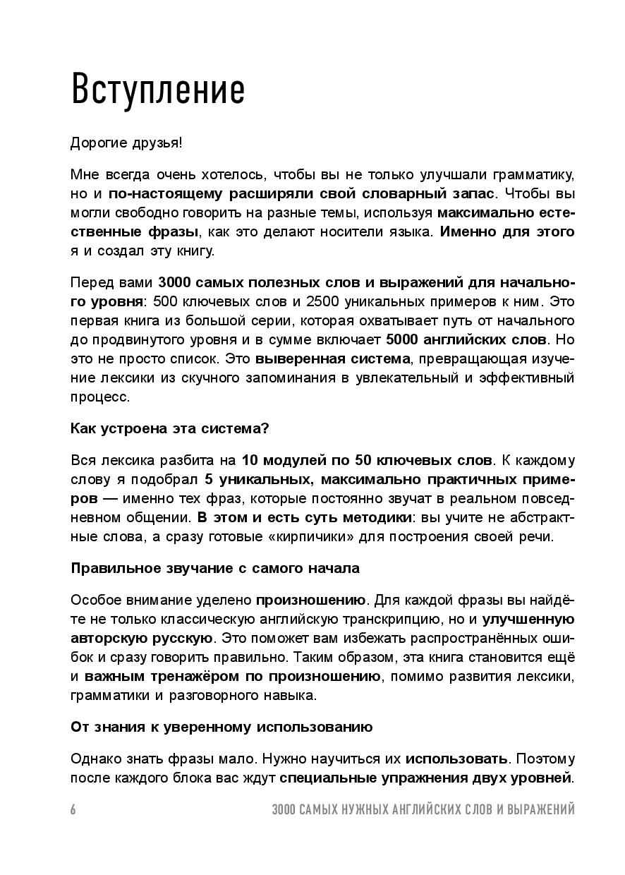 "3000 самых нужных английских слов и выражений" – это не просто словарь или разговорник, а практическая система обучения, которая помогает сформировать активный словарный запас и начать использовать английский в реальной жизни. Эта книга – первая часть уникального авторского курса, который предполагает прокачивание словарного запаса от нулевого уровня до продвинутого и выше.