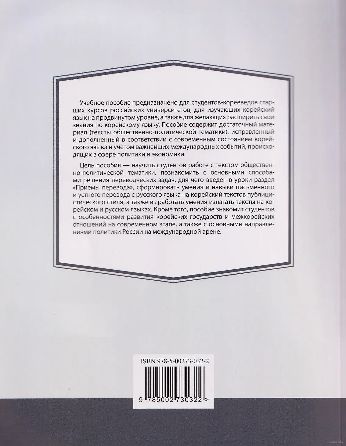 Цель пособия – научить студентов работе с текстом общественно-политической тематики, познакомить с основными способами решения переводческих задач, для чего введен в уроки раздел "Приемы перевода", сформировать умения и навыки письменного и устного перевода с русского языка на корейский текстов публицистического стиля, а также выработать умения излагать тексты на корейском и русском языках.