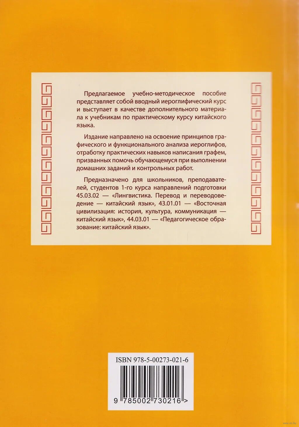 Издание направлено на освоение принципов графического и функционального анализа иероглифов, отработку практических навыков написания графем, призванных помочь обучающемуся при выполнении домашних заданий и контрольных работ.