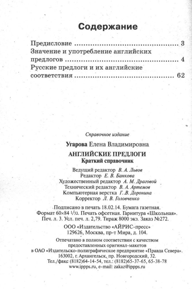 Справочник включает предлоги английского и русского языков. Первая часть содержит наиболее употребительные английские предлоги с объяснениями их значения и примерами употребления. Во вторую часть справочника включены предлоги русского языка с их переводом на английский язык. Благодаря компактной форме и доступности объяснений справочник позволит быстро и точно подбирать эквиваленты выражении с предлогами и не допускать ошибок при употреблении предлогов в речи.