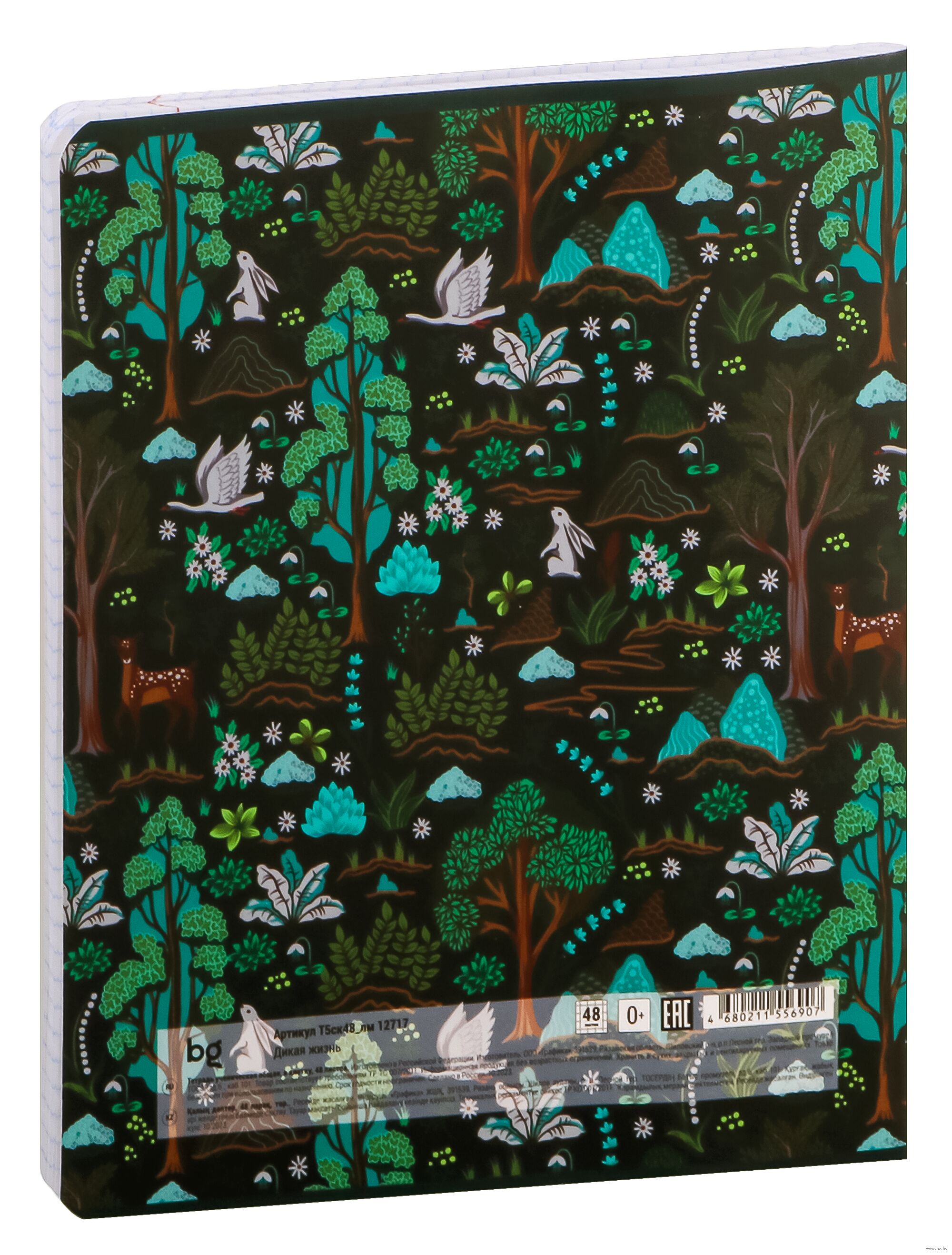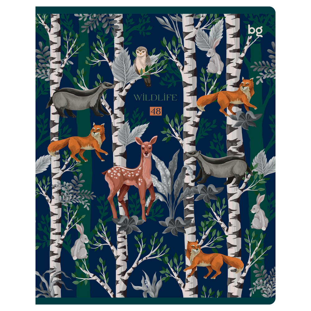Тетрадь BG "Дикая жизнь" в клетку подходит для конспектирования. Внутренний блок на скрепке состоит из 48 листов офсетной бумаги плотностью 65 г/м².