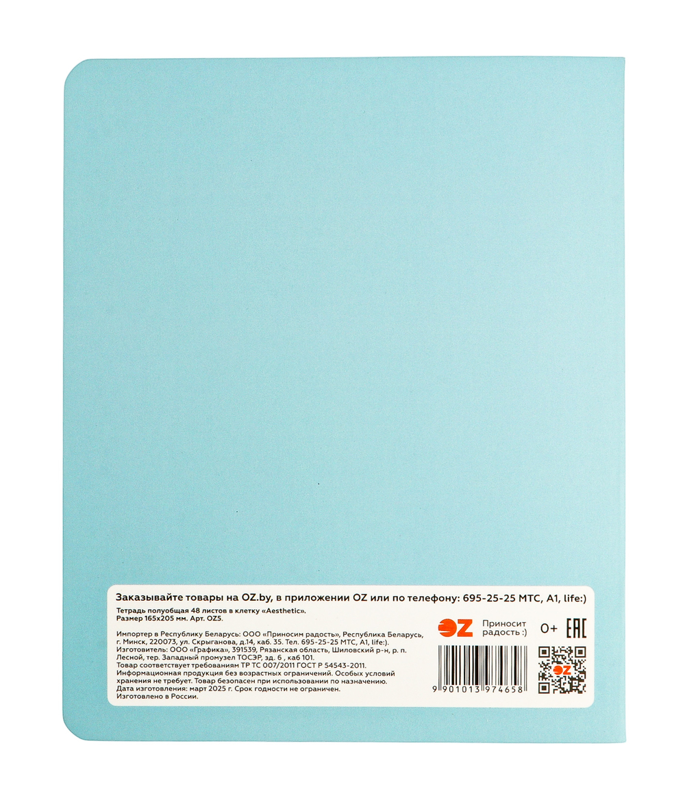 Тетрадь полуобщая в клетку "Aesthetic" (48 листов)
