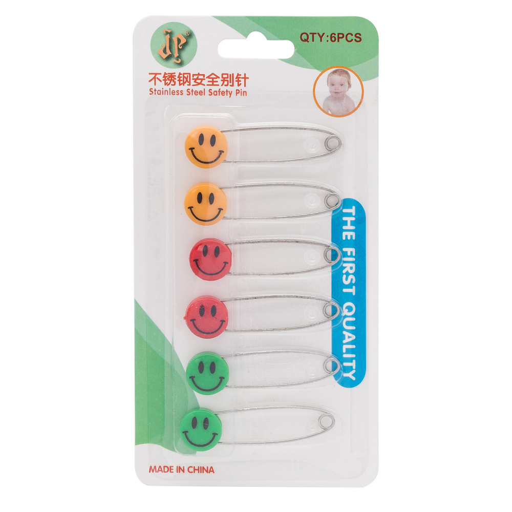 Безопасные английские булавки дополнены защитным колпачком, который выполнен в виде веселых зверят, изготовлены из закаленной стали – она достаточно прочная, отлично пружинит и защищена от коррозии.