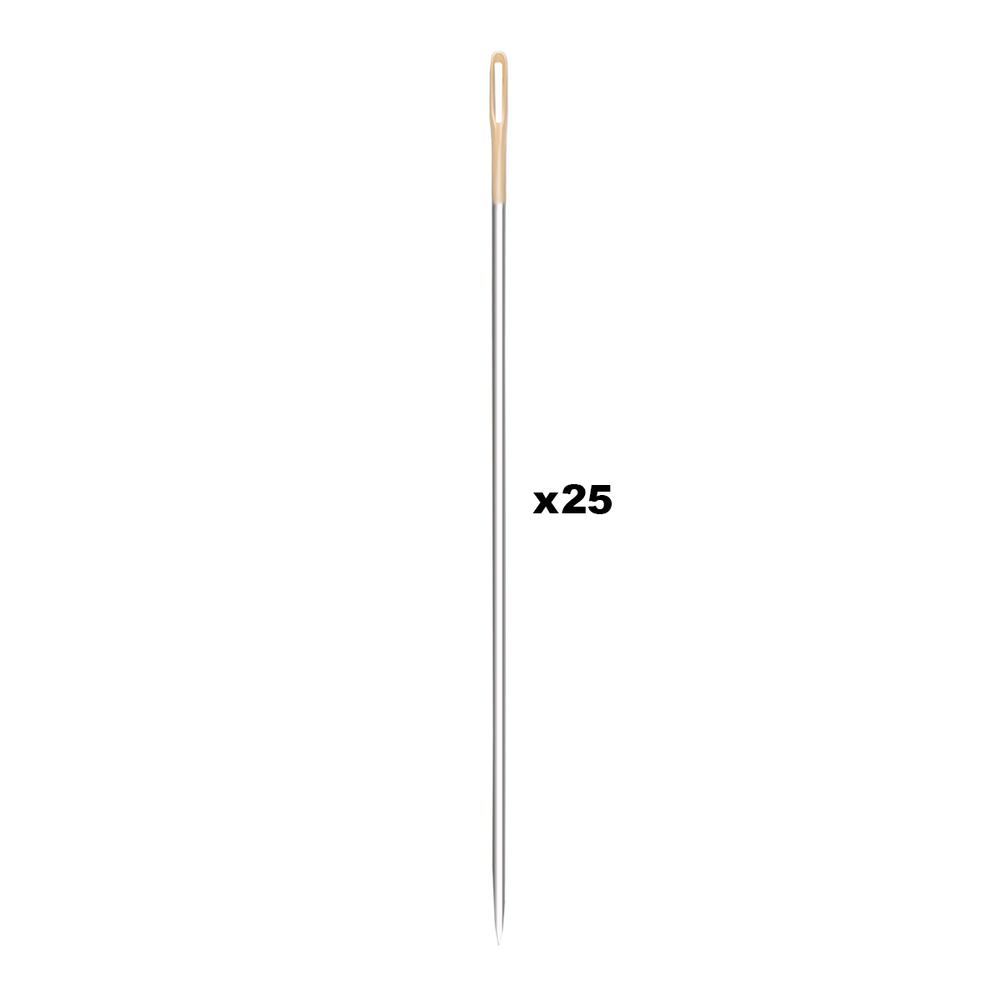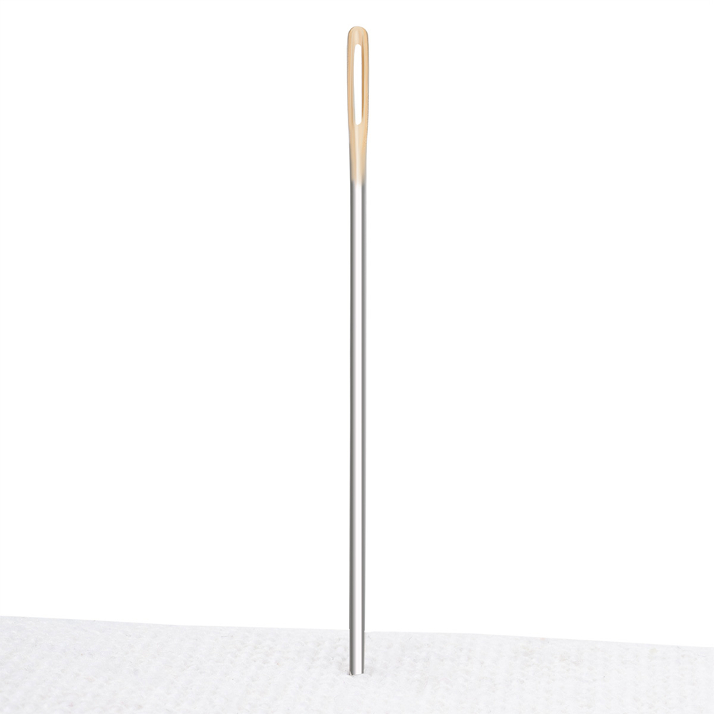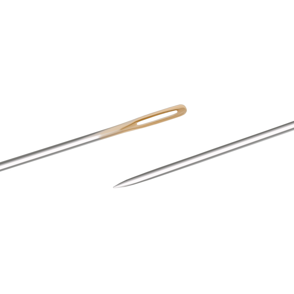 Ушко иглы золотистое, поэтому вдевать в него нить удобно даже при ослабленном зрении. Благодаря этому рабочий процесс становится более комфортным и быстрым, позволяя сосредоточиться на творчестве, а не на технических нюансах.
