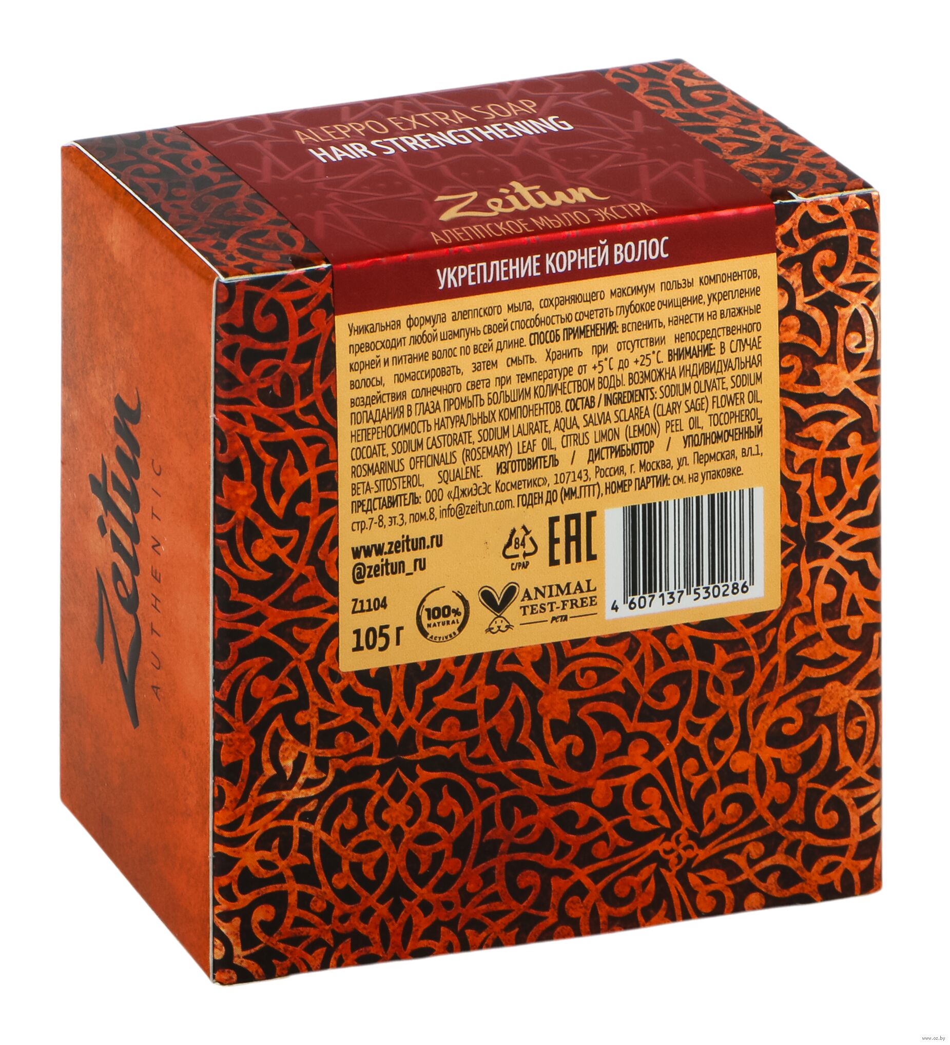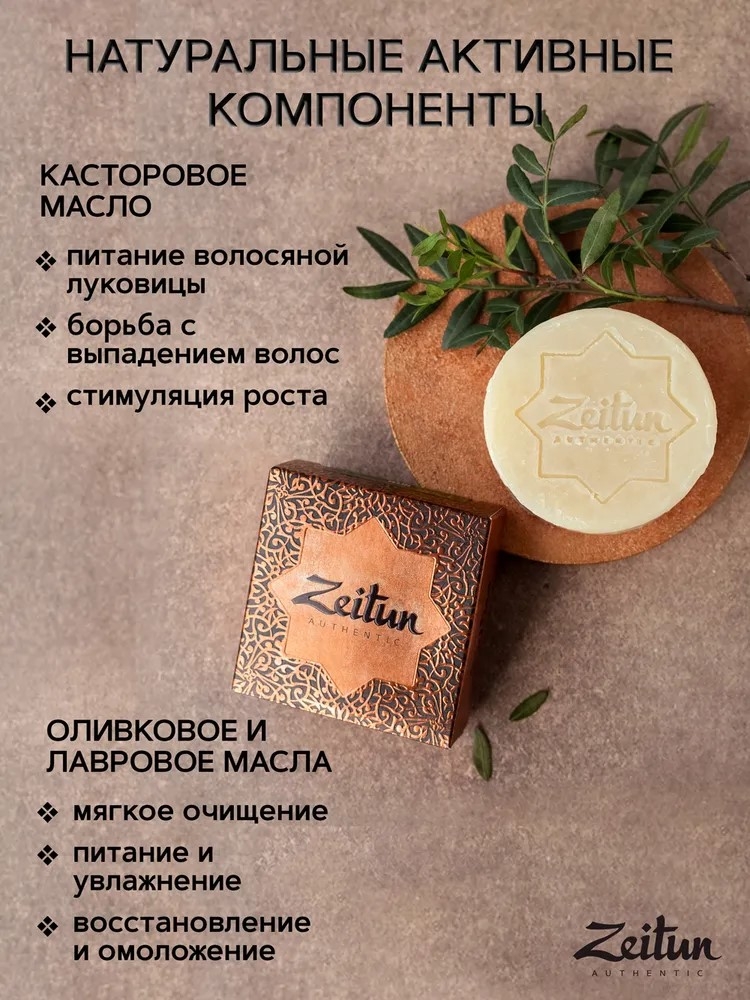 Алеппское мыло экстра Zeitun №4 "Укрепление корней волос" – это комплекс обработанных "холодным способом" натуральных масел – оливкового, лаврового и касторового, которые в омыленном и чистом виде дарят волосам здоровую свежесть, наделяют их природной силой и активизируют рост. Уникальная формула мыла, сохраняющего максимум пользы компонентов, порой, превосходит любой шампунь своей способностью сочетать глубокое очищение, укрепление корней и питание волос по всей длине