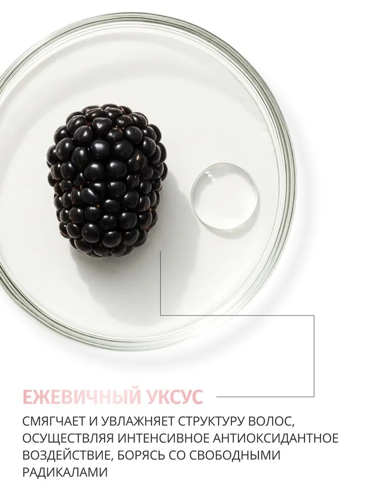 Питательная сбалансированная рН-формула обогащена экстрактом уксуса ежевики, обеспечивает мягкость и увлажнение волос от корней. Выступая в роли антиоксиданта, нейтрализует свободные радикалы.