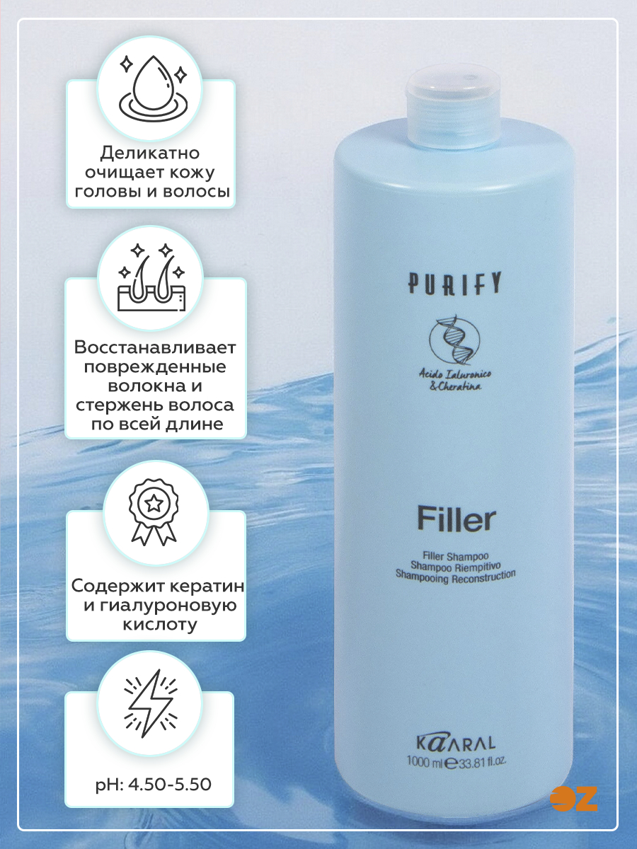 Шампунь деликатно очищает кожу головы и волосы, восстанавливая поврежденные волокна волоса по всей длине, благодаря совместному действию кератина и гиалуроновой кислоты. Питает волосы и делает их более послушными, подготавливая их к обработке филером.