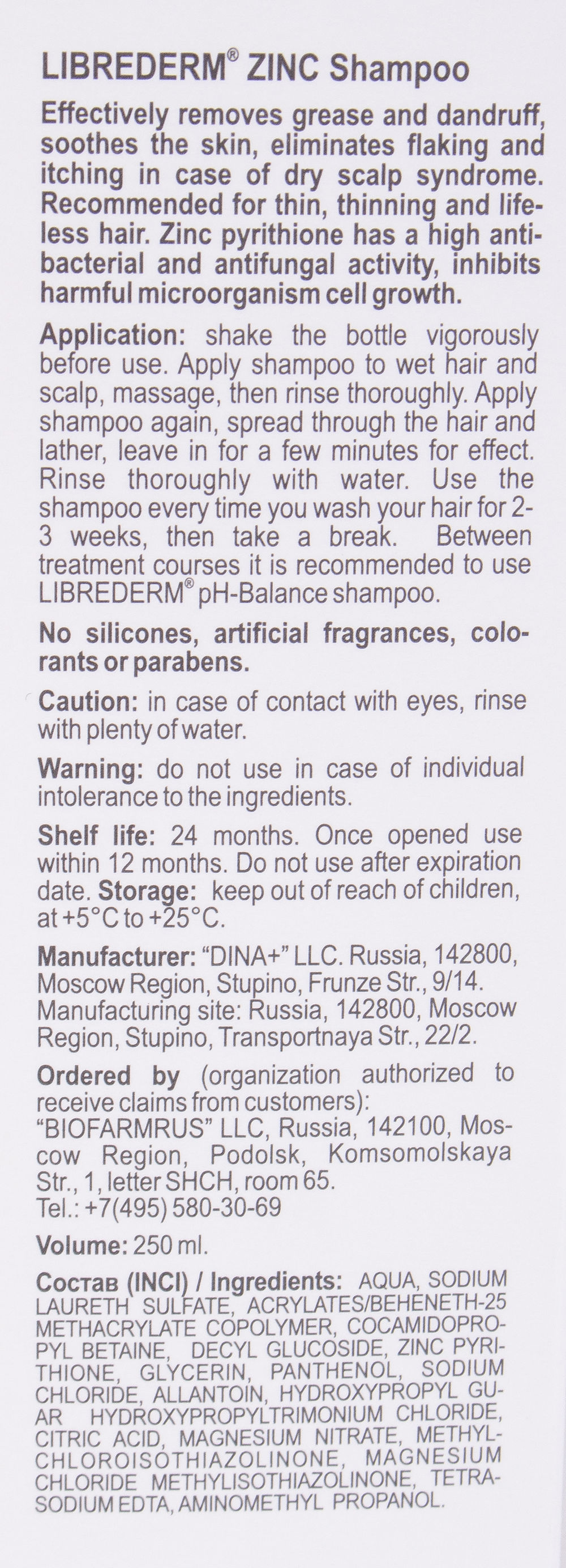 Шампунь "Цинк" предназначен для мытья волос любого типа и очищения кожи от перхоти различного происхождения.