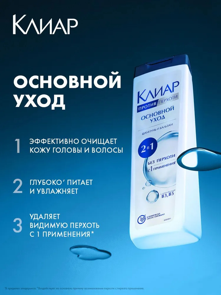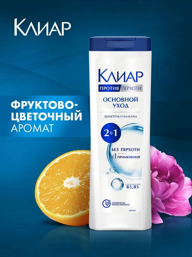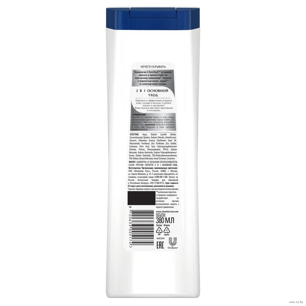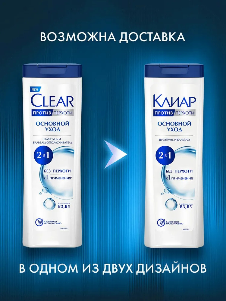 Шампунь и бальзам-ополаскиватель Clear против перхоти 2в1 Основной уход подходит для ежедневного применения.