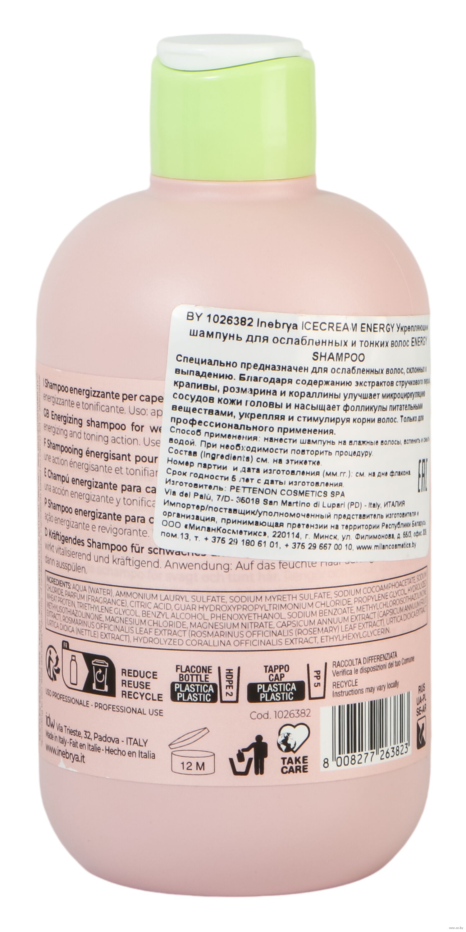 Энергетический шампунь против выпадения волос. Создан на основе экстрактов стручкового перца, крапивы, розмарина и кораллины. Улучшая микроциркуляцию кожи и насыщая фолликулы питательными веществами, укрепляет и стимулирует корни волос.