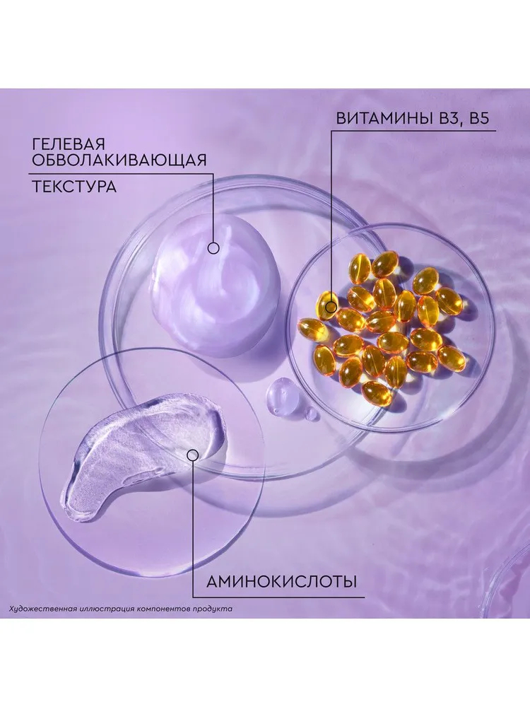 Шампунь содержит витамины В3, B5 для питания кожи головы и стимулирования роста волос.