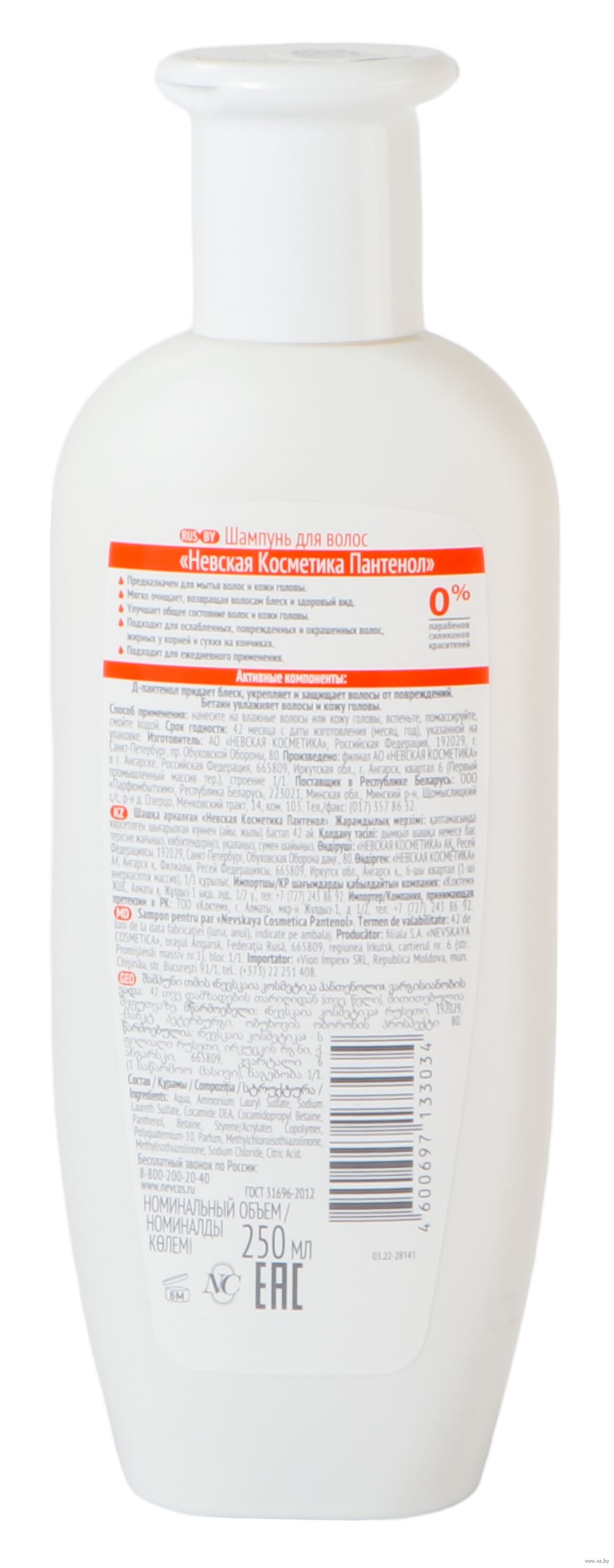 Шампунь "Пантенол" мягко и эффективно очищает волосы и кожу головы. Возвращает волосам блеск и здоровый вид. Улучшает общее состояние волос и кожи головы. Имеет естественный рН.