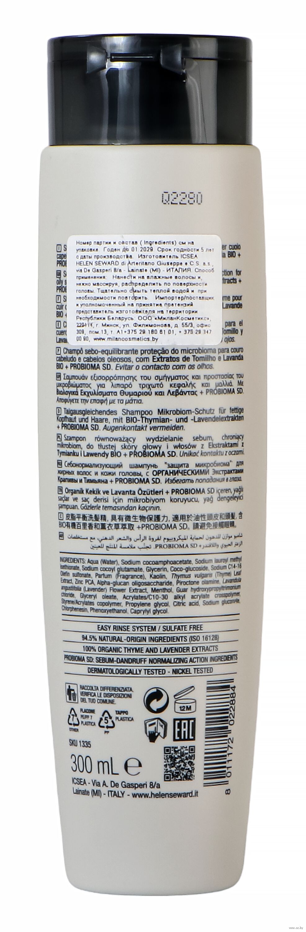 Шампунь "Helen Seward 3/S" предназначен для жирной кожи головы. Он деликатно очищает, удаляя все загрязнения, не стимулируя секрецию кожного сала. Оптимизирует гигиенические условия, тонизирует кожу головы и придает приятное ощущение свежести, объем, легкость и мягкость.