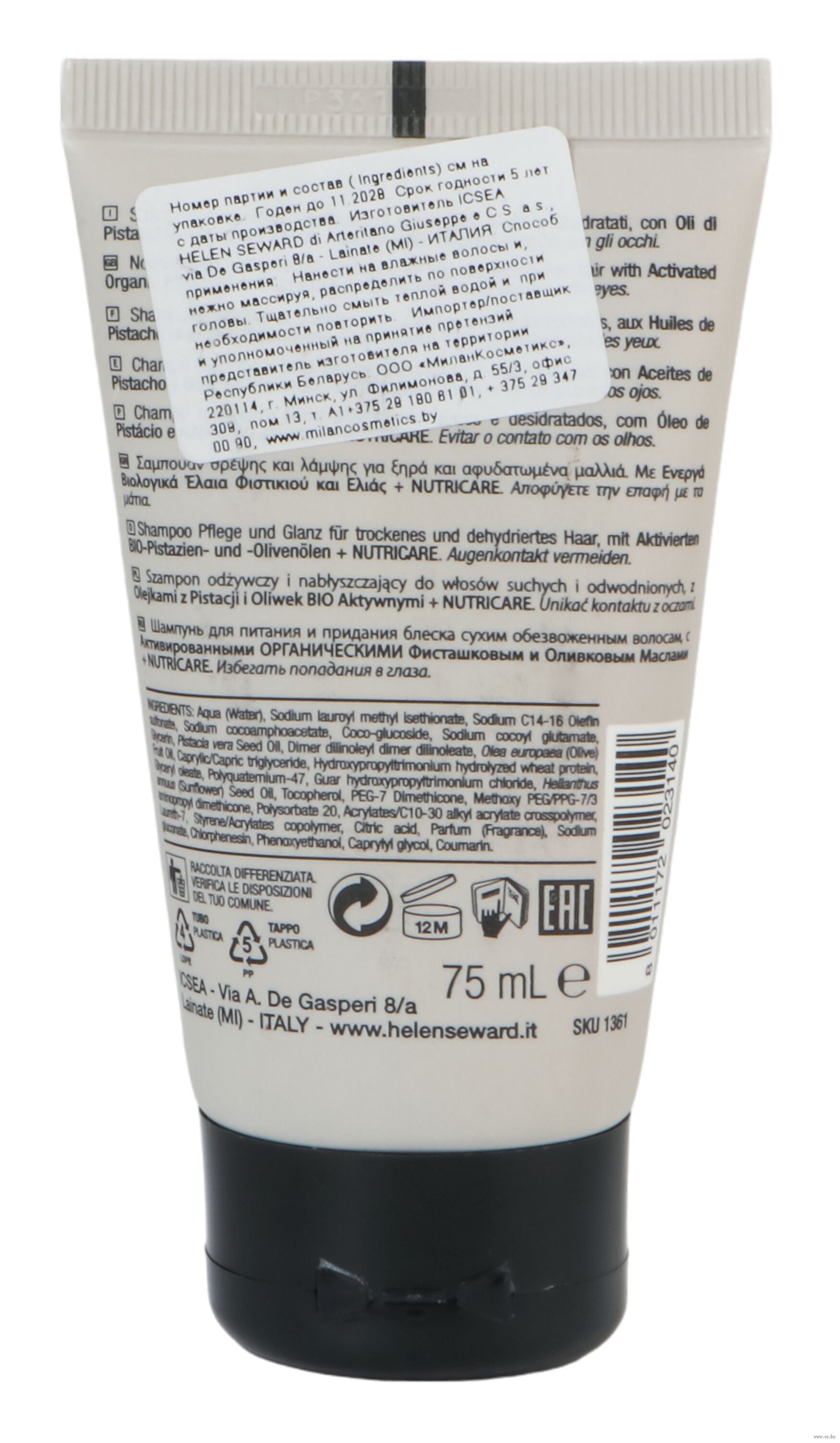 Продукты серии "Nutrive" – предназначены для глубокого питания и придания блеска сухим и обезвоженным волосам. Они обогащены активированными органическими фисташковым и оливковым маслами и системой Nutricare, созданной на основе натуральных активных ингредиентов для питания и придания блеска. Средства Helen Seward "Nutrive" обеспечивают волосам глубокое питание, защиту от высоких температур, разглаживание, уплотнение и блеск. Предотвращают появление секущихся кончиков.