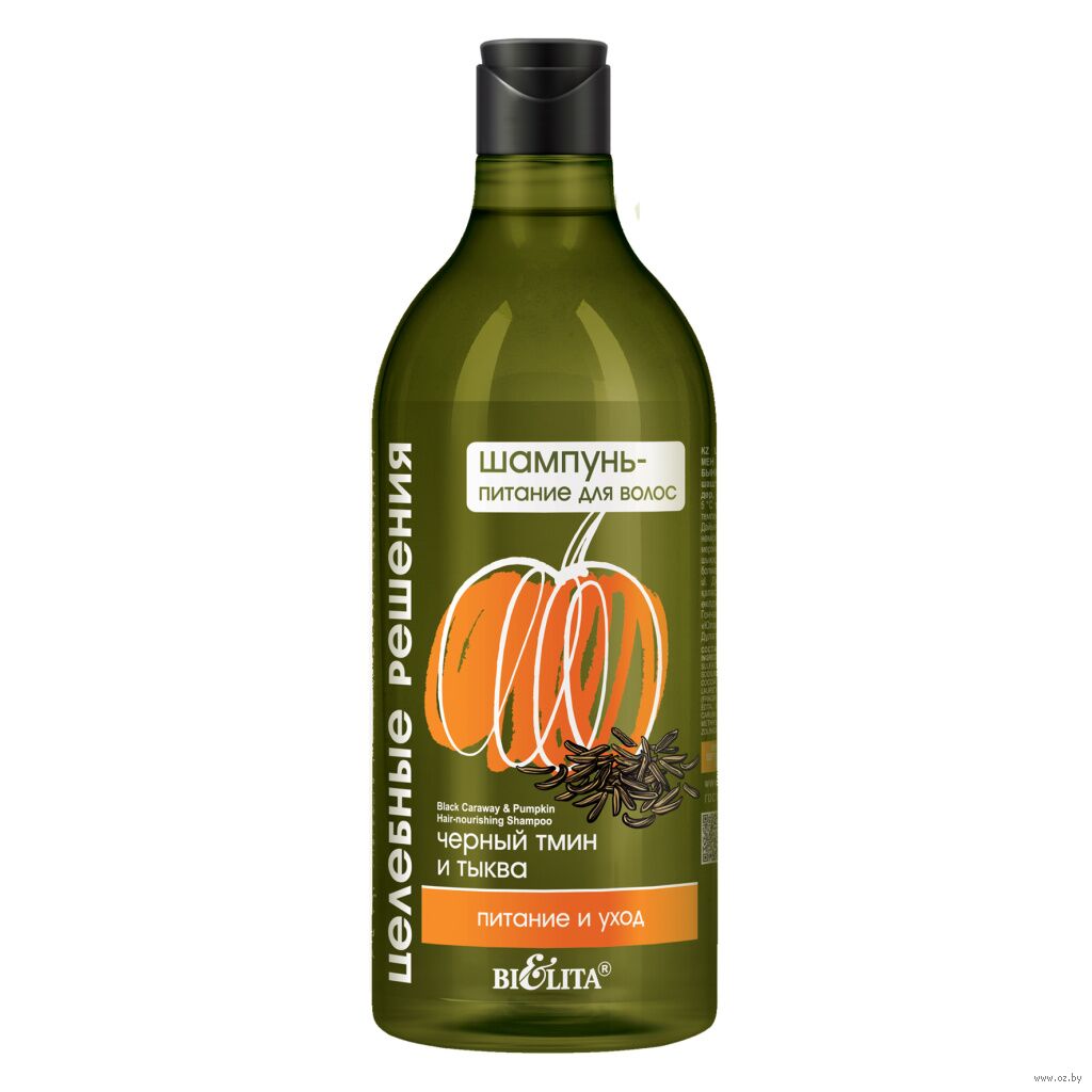 Обогащенный мощными полезными свойствами экстрактов черного тмина и тыквы, шампунь тщательно очищает волосы и насыщает их питательными элементами.