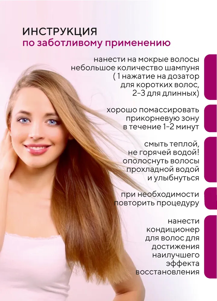 Обогащен лечебными веществами в составе липосом, которые проникают в клеточные структуры волоса и оказывают восстанавливающее и лечебное действие.