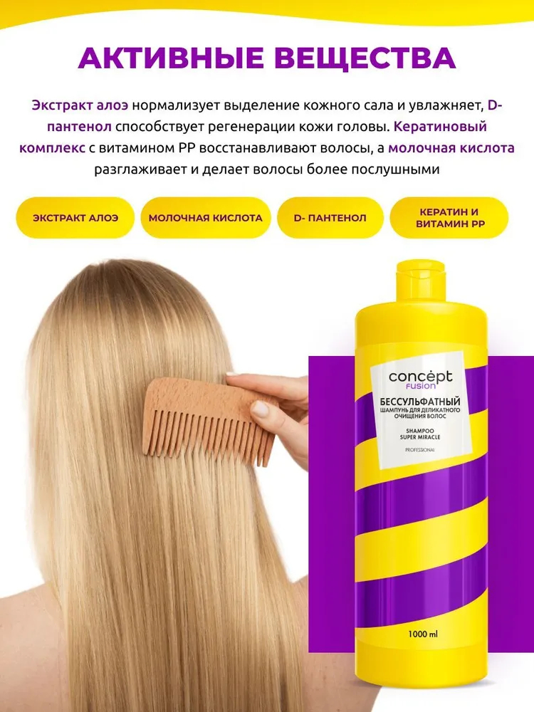 Профессиональный бессульфатный шампунь для деликатного очищения повреждённых волос – это уникальное косметическое средство. Сбалансированный состав шампуня на основе нутриентов, молочной кислоты и витамина РР позволяет деликатно очистить волосы и кожу головы от химических веществ, пыли, а также нейтрализовать примеси и токсины, мягко обволакивая волосы природной защитной плёнкой. Экстракт алоэ вера нормализует выделение кожного сала и увлажняет, предотвращая потерю влаги; D-пантенол способствует регенерации кожи головы. Кератиновый комплекс с витамином РР заполняют повреждённую структуру волос, возвращают волосам гибкость, блеск и свежесть. Шампунь не пересушивает волосы и кожу головы. Не вымывает цвет.