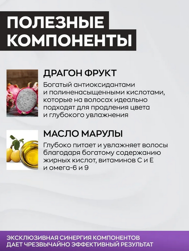 | Эффект | Блеск, защита цвета, нейтрализация желтизны, питание, увлажнение |