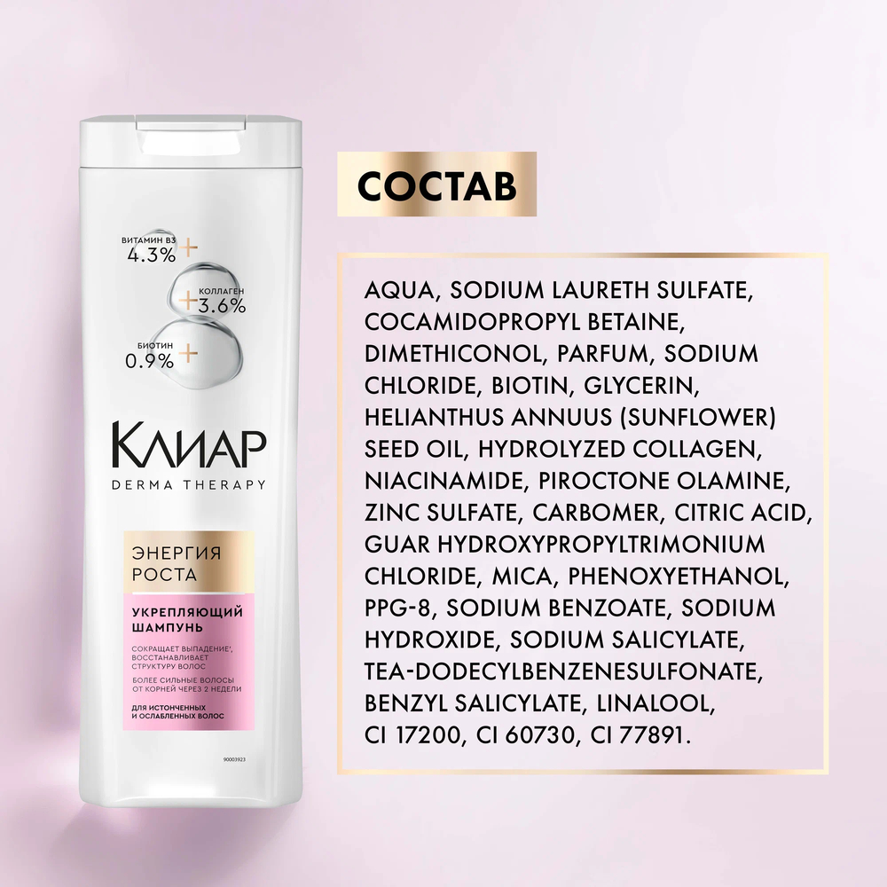Aqua, Sodium Laureth Sulfate, Cocamidopropyl Betaine, Dimethiconol, Parfum, Sodium Chloride, Biotin, Glycerin, Helianthus Annuus (Sunflower) Seed Oil, Hydrolyzed Collagen, Niacinamide, Piroctone Olamine, Zinc Sulfate, Carbomer, Citric Acid, Guar Hydroxypropyltrimonium Chloride, Mica, Phenoxyethanol, PPG-8, Sodium Benzoate, Sodium Hydroxide, Sodium Salicylate, TEA-Dodecylbenzenesulfonate, Benzyl Salicylate, Linalool, CI 17200, CI 60730, CI 77891.Мы используем файлы cookie для обеспечения удобства работы с сайтом и его контакта с пользователем.