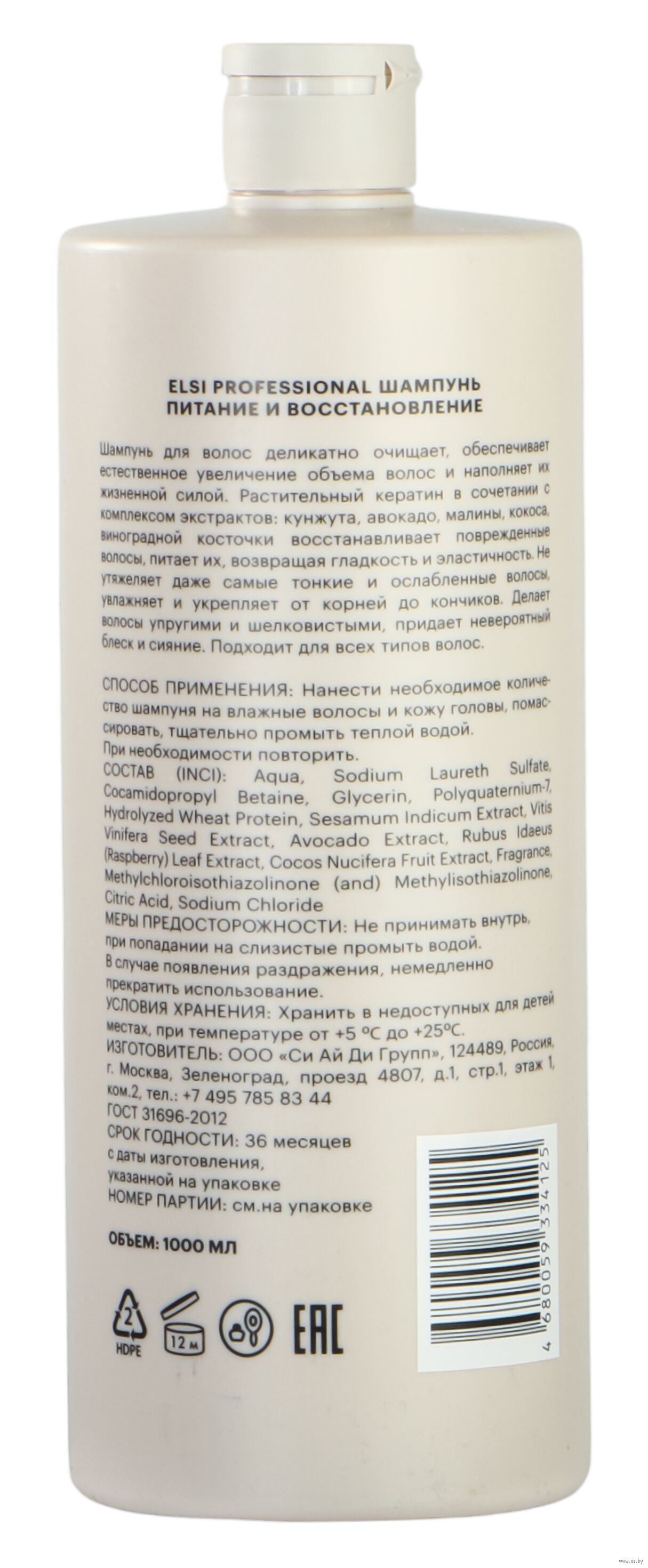 Подходит для всех типов волос и ежедневного применения. Не содержит силиконы и парабены. При комплексном использовании с кондиционером и спреем для волос Элси обеспечивает салонный эффект пролонгированного действия.