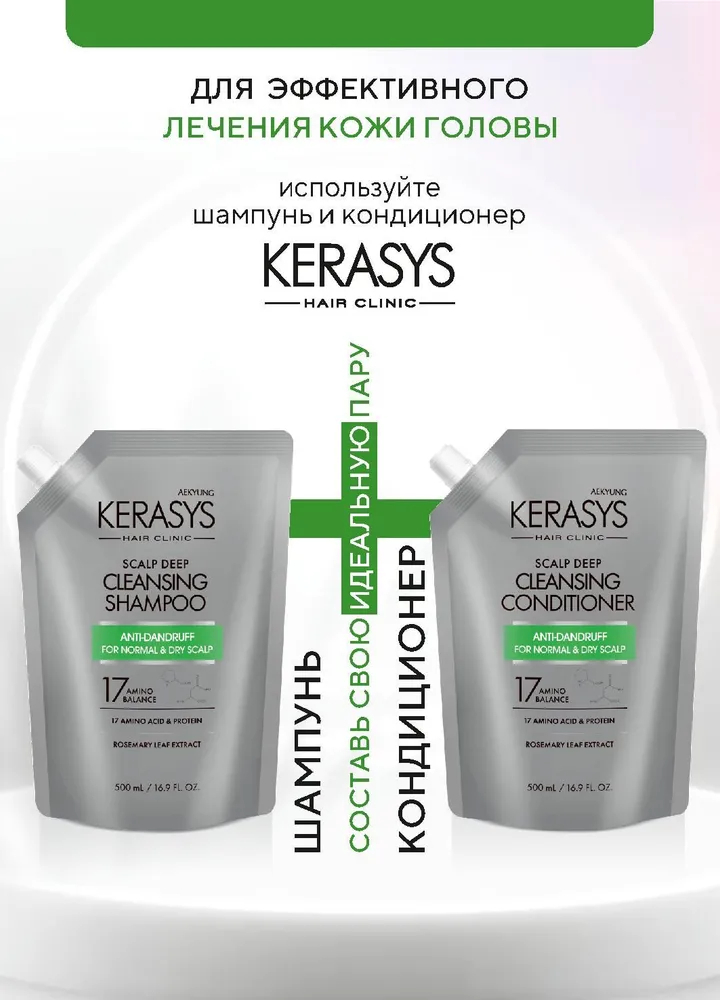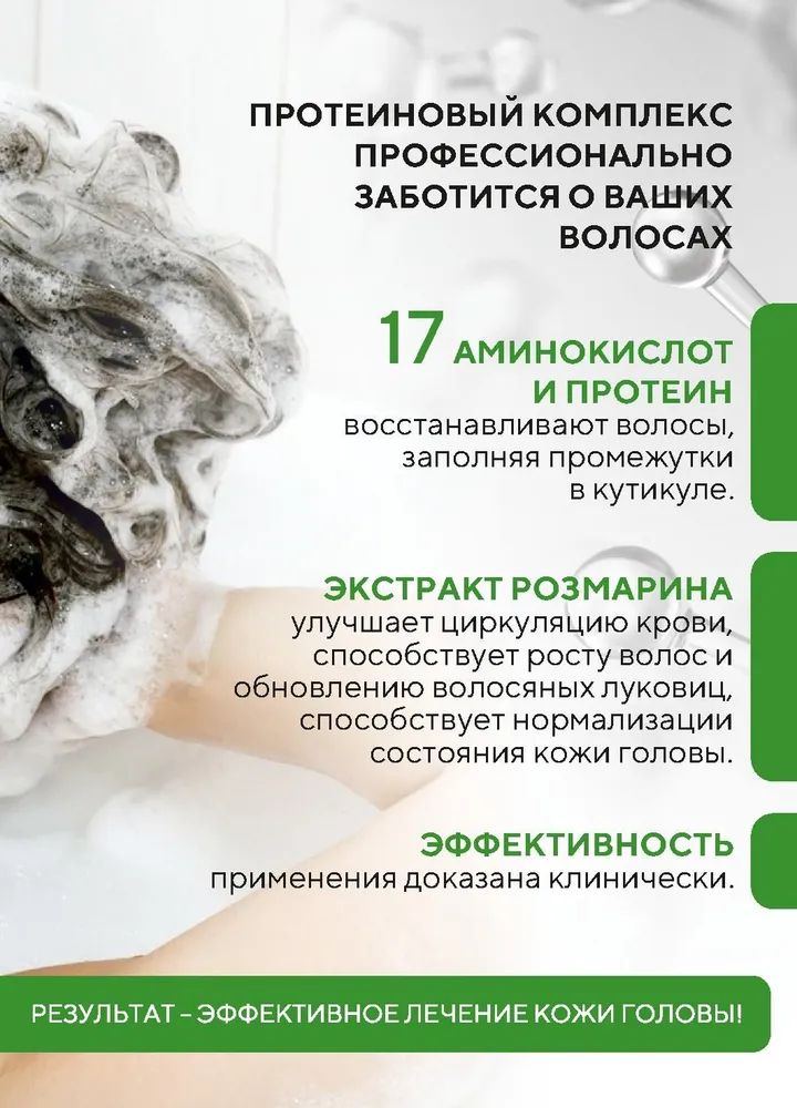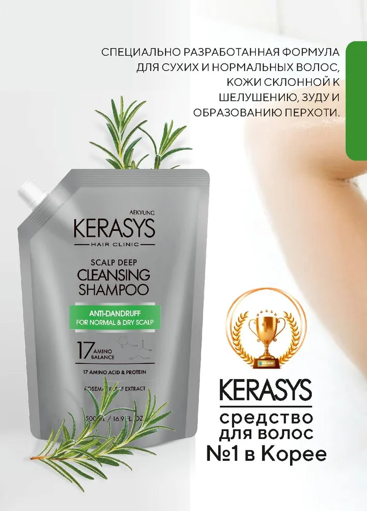 Специально разработанная формула для сухой и нормальной кожи головы склонной к появлению перхоти и зуда. Мягко очищает, не вызывая раздражения. Содержит 17 видов аминокислот и протеинов, которые эффективно питают волосы изнутри, и масло розмарина, которое успокаивает и освежает раздраженную и чувствительную кожу головы.