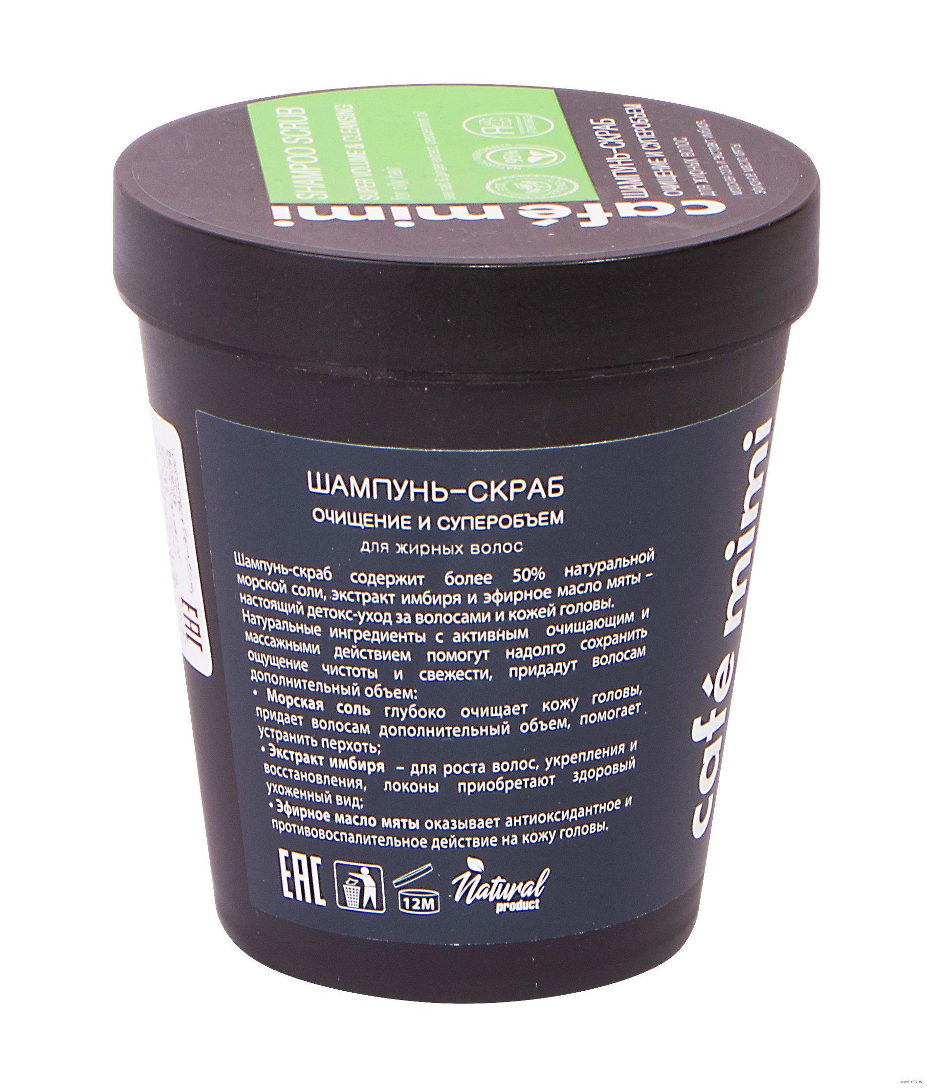 Шампунь-скраб содержит более 50% натуральной морской соли, экстракт имбиря и эфирное масло мяты – настоящий детокс-уход за волосами и кожей головы.