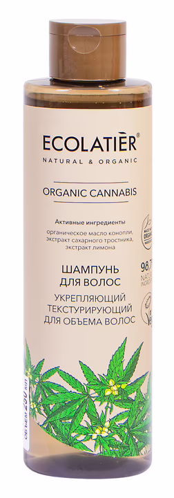 Шампунь для волос "Текстурирующий. Для объема волос", благодаря маслу семян конопли и активным компонентам в составе, эффективно питает волосы, придает им силу и прикорневой объем.