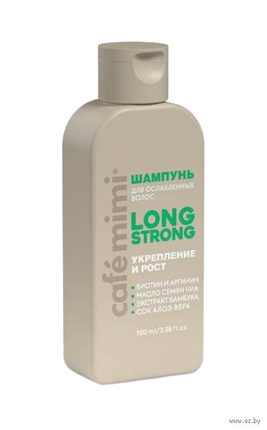 Aqua, Sodium Coco-Sulfate, Cocamidopropyl Betaine, Sodium Chloride, Aloe Barbadensis Leaf Juice (сок алоэ вера), Phyllostachys Bambusoides Leaf Extract (экстракт бамбука), Disodium Cocoamphodiacetate, Salvia Hispanica Seed Oil (масло семян чиа), Hydroxypropyl Guar Hydroxypropyltrimonium Chloride, Arginine (аргинин), Biotin (биотин), Citric Acid, Benzyl Alcohol, Sodium Benzoate, Potassium Sorbate, Parfum, Limonene, Linalool.