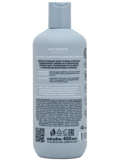 Шампунь стимулирующий рост волос бережно очищает кожу головы и волосы, поддерживает свежесть в течение дня. Способствует ускорению роста волос и укреплению волосяных луковиц.