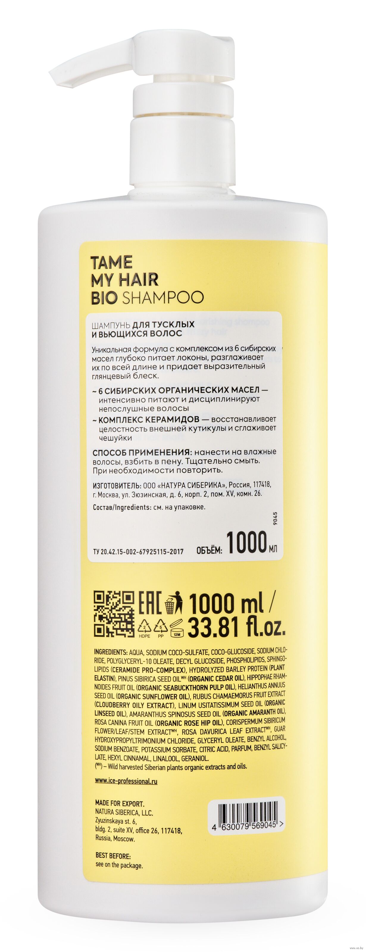 Уникальная формула с комплексом из 6 сибирских масел глубоко питает локоны, разглаживает их по всей длине и придает выразительный глянцевый блеск.