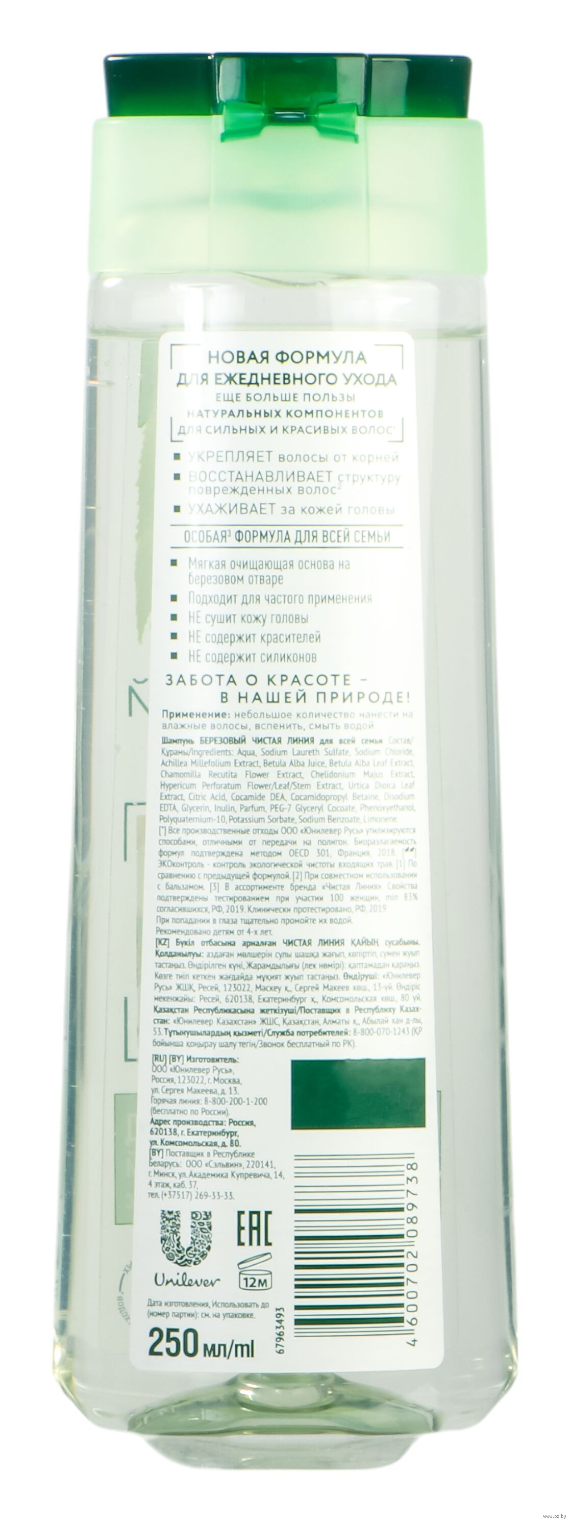 Aqua, Sodium Laureth Sulfate, Sodium Chloride, Cocamide DEA, Cocamidopropyl Betaine, PEG-7 Glyceryl Coconate, Betula Alba Juice, Betula Alba Leaf Extract, Urtica Dioica (Nettle) Leaf Powder, Chamomilla Recutita (Matricaria) Flower, Achillea Millefolium Extract, Hypericum Perforatum Flower/Leaf/Stem Extract, Chelidonium Majus Extract, Polyquaternium-10, Glycerin, Parfum, Disodium EDTA, Hydroxypropyl Methylcellulose, PEG-45M, Silica, Citric Acid, Methytisothiazolinone, Methyldrloroisothiazolinone, Sodium Benzoate, Potassium Sorbate, Benzyl Salicylate, Hexyl Cinnamal.Мы используем файлы cookie для обеспечения удобства работы с сайтом и его контакта с пользователем.