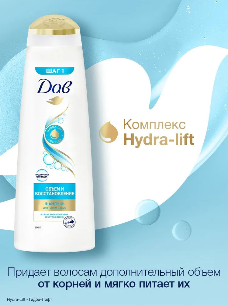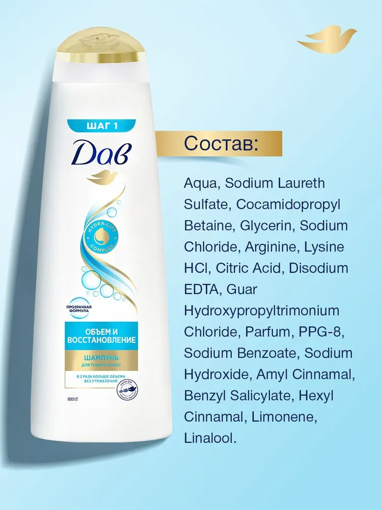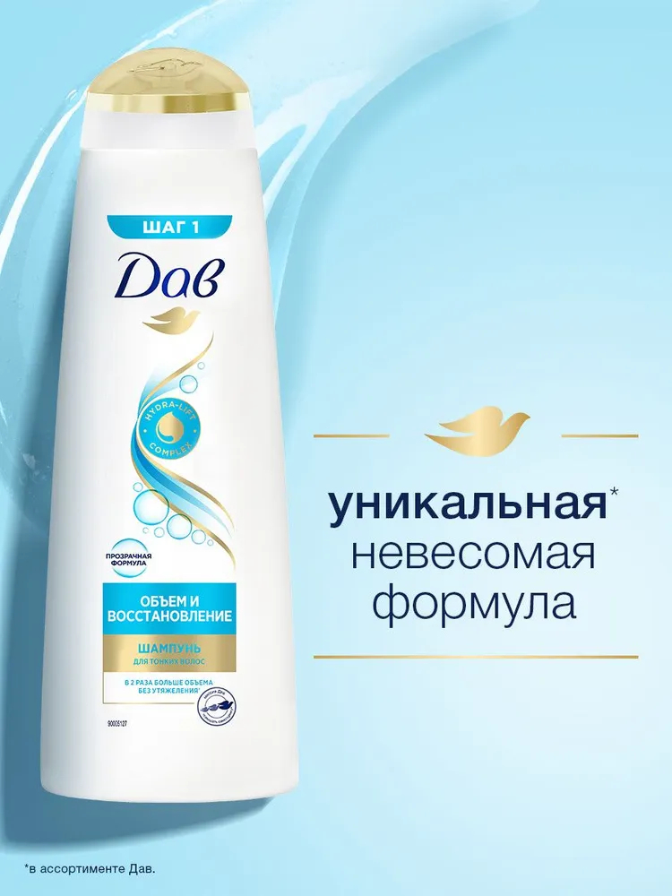 Благодаря формуле деликатного очищения шампунь Dove Объем и восстановление идеально подходит для ежедневного использования.