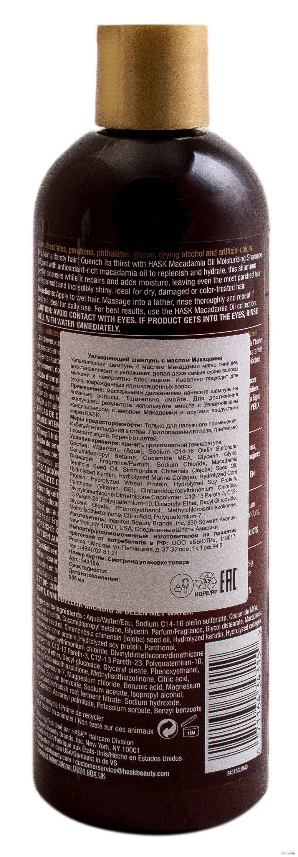 Aqua/Water/Eau, Sodium C14-16 olefin sulfonate, Cocamide MEA, Sodium chloride, Cocamidopropyl betaine, Glycerin, Parfum/Fragrance, Glycol distearate, Macadamia ternifolia seed oil, Simmondsia chinensis (jojoba) seed oil, Hydrolyzed keratin, Hydrolyzed collagen, Hydrolyzed corn protein, Hydrolyzed soy protein, Panthenol, Cinnamidopropyltrimonium chloride, Divinyldimethicone/dimethicone copolymer, C12-13 Pareth-3, C12-13 Pareth-23, Polyquaternium-10, Dicaprylyl ether, Decyl glucoside, Glyceryl oleate, Phenoxyethanol, Methylchloroisothiazolinone, Methylisothiazolinone, Citric acid, Polyquaternium-7, Magnesium chloride, Benzoic acid, Magnesium nitrate, Sodium benzoate, Sodium acetate, Leuconostoc/radish root ferment filtrate, Sodium hydroxide, Tocopherol, Ascorbyl palmitate, Potassium sorbate, Benzyl benzoate.Мы используем файлы cookie для обеспечения удобства работы с сайтом и его контакта с пользователем.