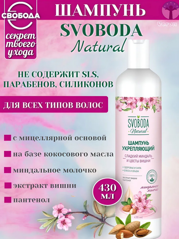 Пантенол восстанавливает структуру волос, экстракт вишни и миндальное молочко питают и укрепляют волосы по всей длине. Волнующий марципановый аромат доставляет удовольствие при использовании.