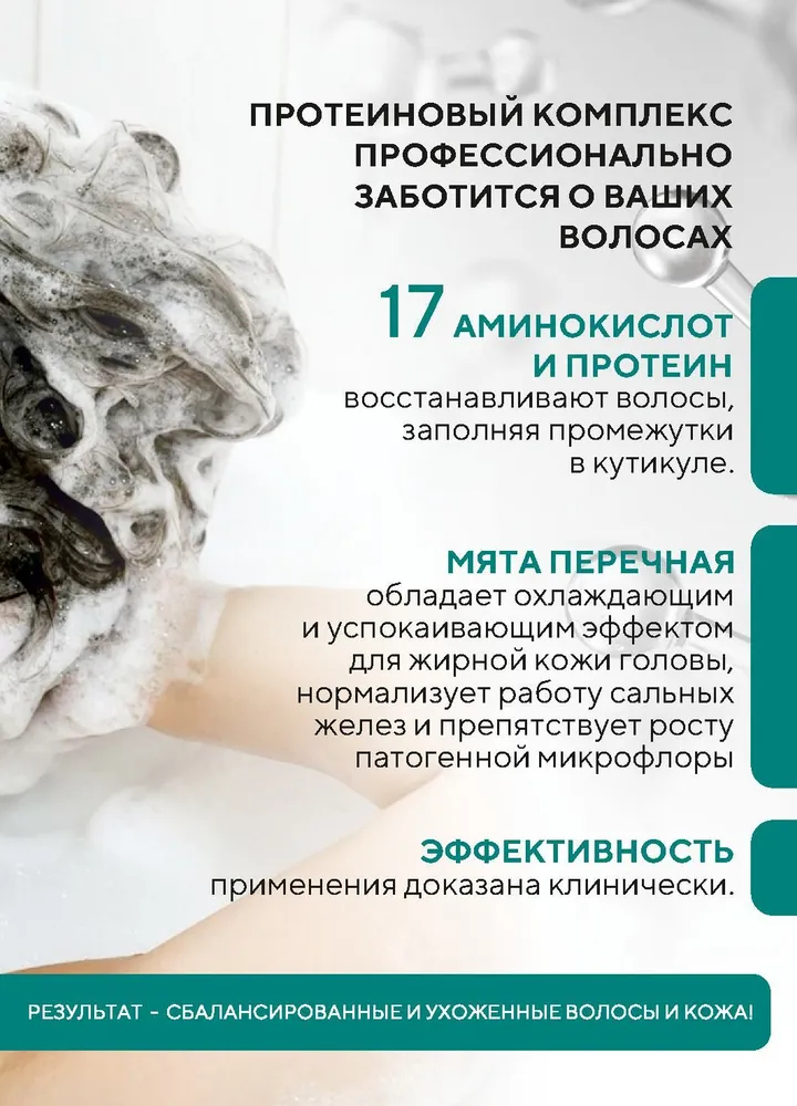 Мягко очищает, не вызывая раздражения. Придает ухоженный и здоровый вид волосам.