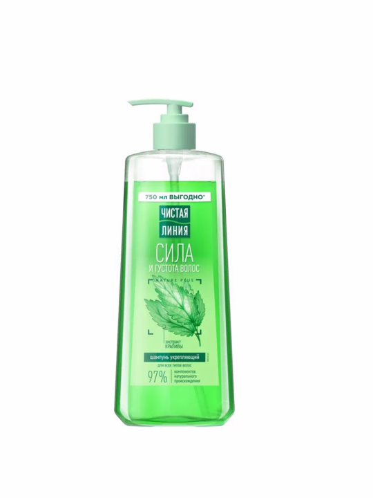 Очищающий шампунь содержит 97% компонентов натурального происхождения. Шампунь для ухода за волосами содержит в своем составе эссенцию из 5 экстрактов и масел: экстракты вербены, шалфея и шиповника, масла льна и миндаля. Шампунь для поврежденных волос не содержит силикона. Шампунь Чистая линия для женских волос с репейным маслом и прокератиновым комплексом разработан с применением новой технологии 3D Восстановления поврежденных прядей.