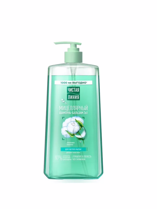 Шампунь для чувствительной кожи головы с хлопковым молочком подходит для всех типов волос. Шампунь Чистая линия для волос женский мягко очищает пряди и кожу головы, не пересушивая. Шампунь-бальзам для легкого расчесывания волос 2в1 идеально подходит для чувствительной кожи головы. Очищающий шампунь для волос 2в1 с хлопковым молочком бережно ухаживает за локонами, придает им гладкость. Бальзам для волос Чистая линия смягчает пряди, облегчает расчесывание.