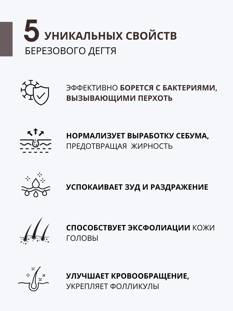 | Особенности состава | Без парабенов, без силиконов, дегтярный |
