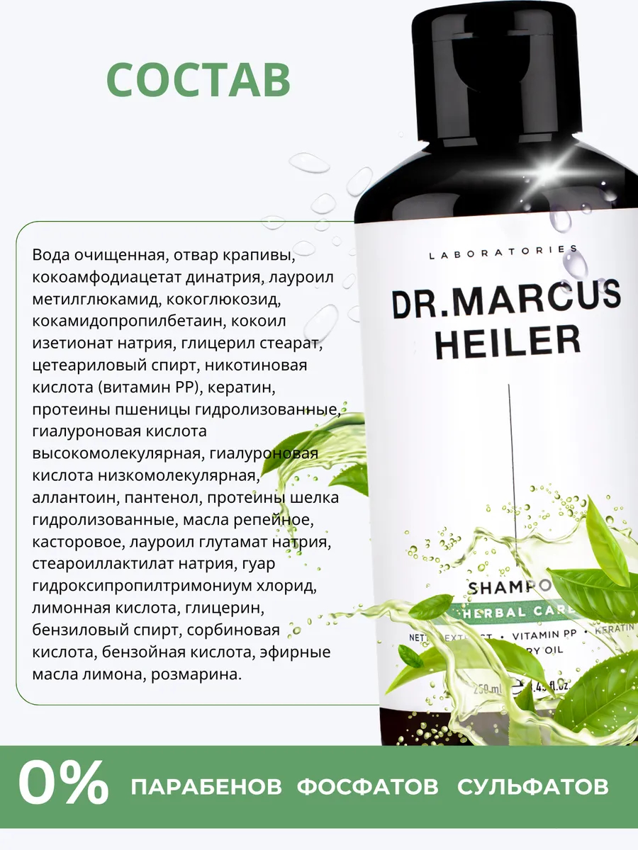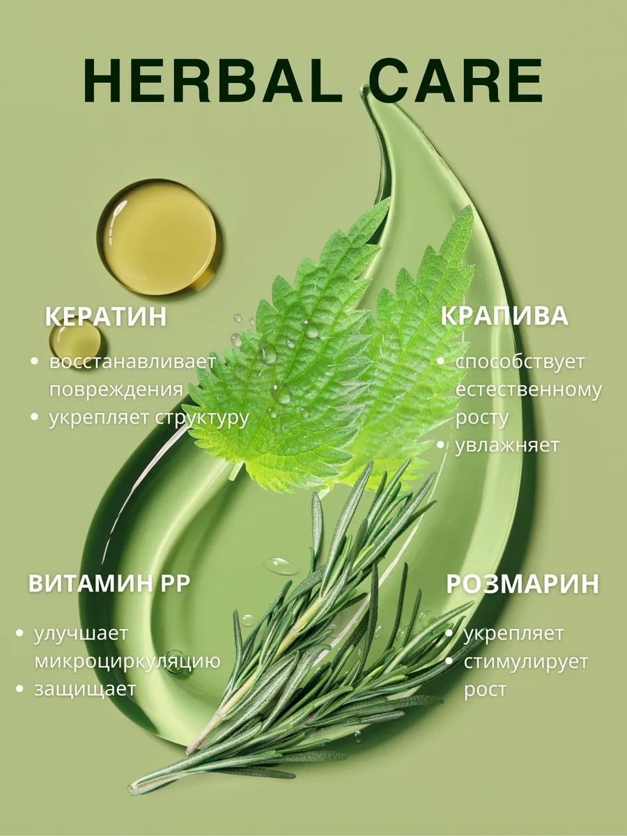 Вода очищенная, отвар крапивы, кокоамфодиацетат динатрия, лауроил метилглюкамид, кокоглюкозид, кокамидопропилбетаин, кокоил изетионат натрия, глицерил стеарат, цетеариловый спирт, никотиновая кислота (витамин РР), кератин, протеины пшеницы гидролизованные, гиалуроновая кислота высокомолекулярная, гиалуроновая кислота низкомолекулярная, аллантоин, пантенол, протеины шелка гидролизованные, масла репейное, касторовое, лауроил глутамат натрия, стеароиллактилат натрия, гуар гидроксипропилтримониум хлорид, лимонная кислота, глицерин, бензиловый спирт, сорбиновая кислота, бензойная кислота, эфирные масла лимона, розмарина.