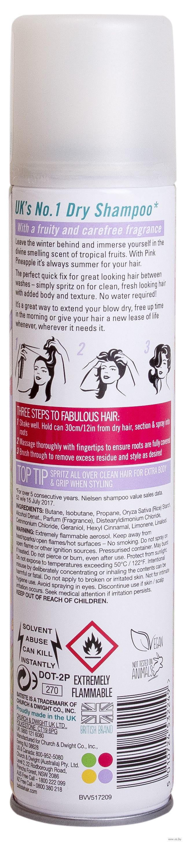 Новый "Batiste. Pink Pineapple" за считанные мгновения сделает волосы чистыми и готовыми к укладке без воды. Просто, быстро, удобно!