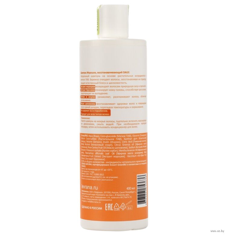 Аqua (вода), coco-glucoside (мягкое пав), glycerin (глицерин), sodium coco-sulfate (растительное пав), xanthan gum (ксантановая камедь), betaine (бетаин), inulin (инулин), citric acid (лимонная кислота), benzyl alcohol (бензиловый спирт), citrus sinensis oil (эфирное масло апельсина), rosa canina fruit oil (масло шиповника), sodium benzoate (натрия бензоат), potassium sorbate (калия сорбат), mentha arvensis oil (эфирное масло мяты), rosmarinus officinalis leaf oil (эфирное масло розмарина), rubus chamaemorus fruit extract (экстракт морошки), vaccinium vitis-idaea fruit extract (экстракт брусники).