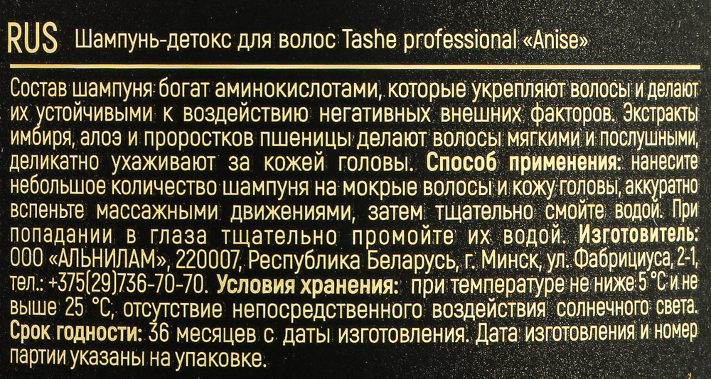 Состав шампуня богат аминокислотами, которые укрепляют волосы и делают их устойчивыми к воздействию негативных внешних факторов. Экстракты имбиря, алоэ и проростков пшеницы делают волосы мягкими и послушными, деликатно ухаживают за кожей головы.