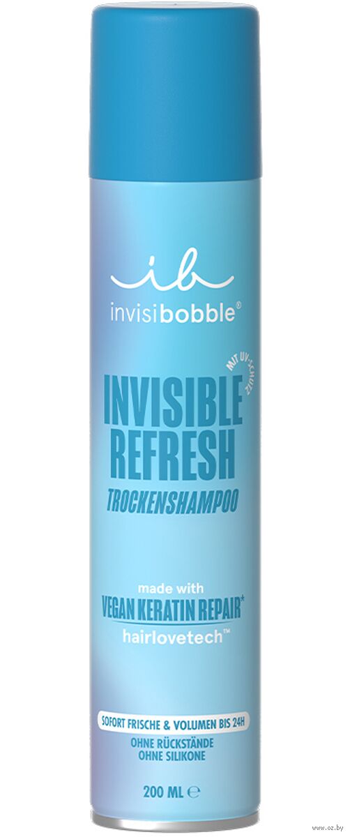Invisibobble Invisible Refresh Dry Shampoo – инновационный невидимый сухой шампунь для свежести волос без смывания водой. Он мягко очищает пряди от корней до кончиков, сохраняя укладку и придавая дополнительный объем. Эффект длится до 24 часов, не оставляя следов и не утяжеляя волосы.