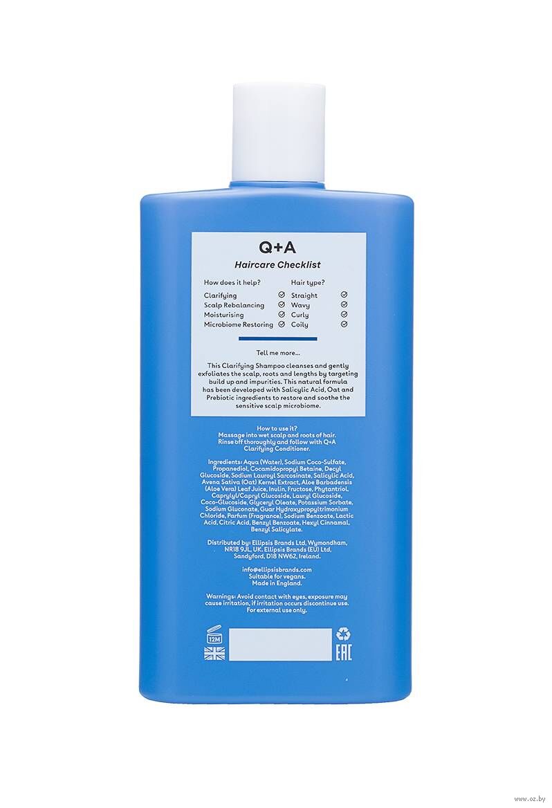 Чистота и баланс в стиле Q+A. Балансирующий шампунь "Clarifying" создан для глубокого очищения волос и кожи головы.