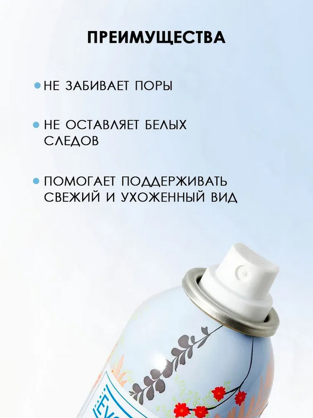 Используйте шампунь на сухих волосах, накинув полотенце на плечи. Встряхните перед использованием и еще раз между распылениями. Держите его на расстоянии 15 см от волос и распыляйте легким нажимом, концентрируясь на корнях. Оставьте на 2 минуты, затем расчешите волосы, чтобы удалить излишки продукта.Состав