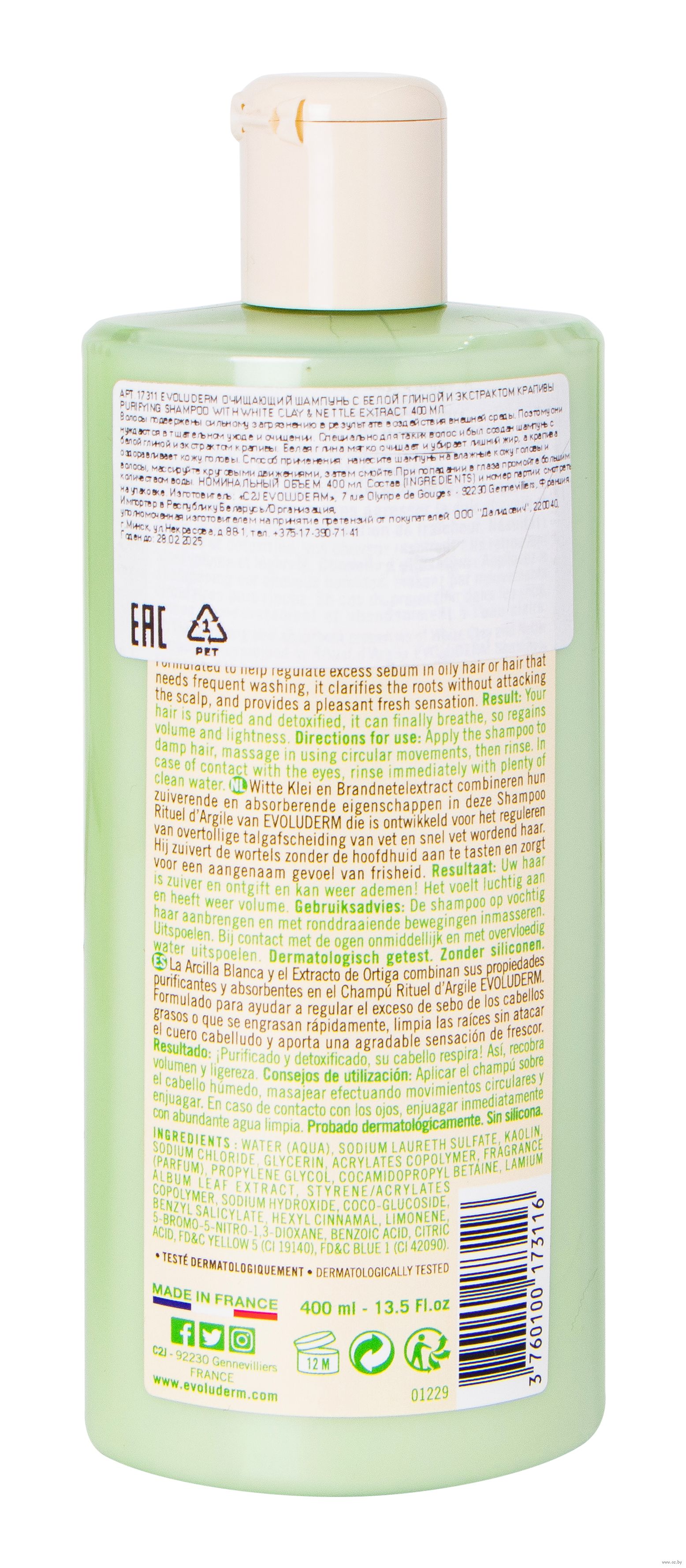 Очищающий шампунь специально разработан для жирных или склонных к жирности волос. Его формула сочетает в себе очищающие и детоксицирующие свойства белой глины с преимуществами экстракта крапивы, который укрепляет волосы и оживляет волокна волос. Этот шампунь помогает регулировать избыток кожного жира и очищает корни, не повреждая кожу головы. Его кремовая текстура оставляет ощущение свежести волос. Волосы чистые, мягкие и долго пахнут тонким ароматом.