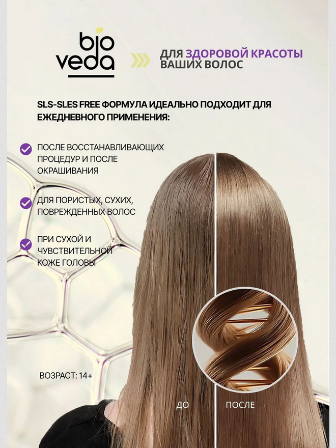 SLS-SLES Free формула идеально подходит для применения после восстанавливающих процедур и после окрашивания, для пористых, сухих, поврежденных волос, при сухой и чувствительной коже головы.
