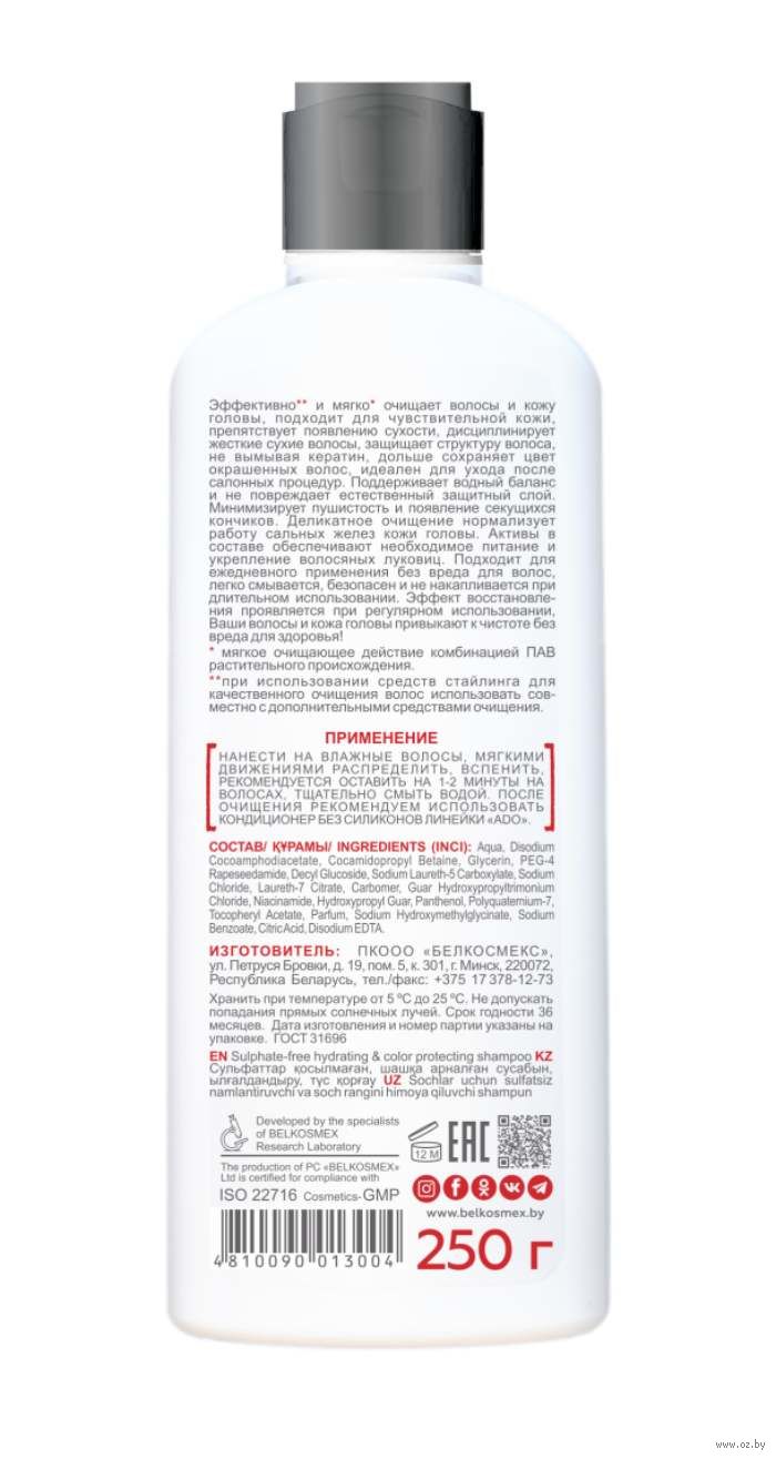 | Особенности состава | Без сульфатов |